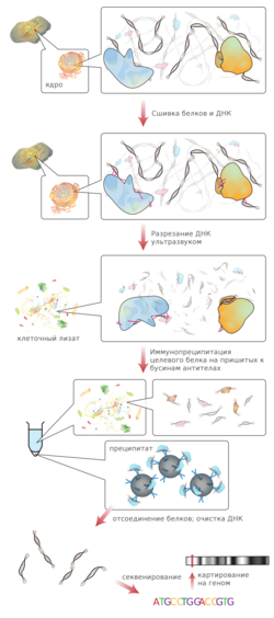 ChIP-seq (Chromatin Immunoprecipitation followed by sequencing) – это мощный метод, который позволяет нам определить, какие белки взаимодействуют с ДНК в определенных областях генома. Вкратце, метод заключается в следующем: мы "сшиваем" белки с ДНК, фрагментируем ДНК, а затем используем антитела, специфичные к интересующему нас белку, чтобы "выловить" комплексы ДНК-белок. После этого мы секвенируем ДНК, чтобы определить, какие участки генома были связаны с этим белком.
