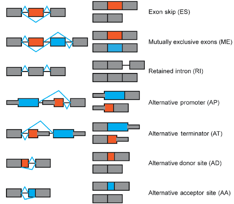 Существует несколько основных механизмов, посредством которых происходит альтернативный сплайсинг: